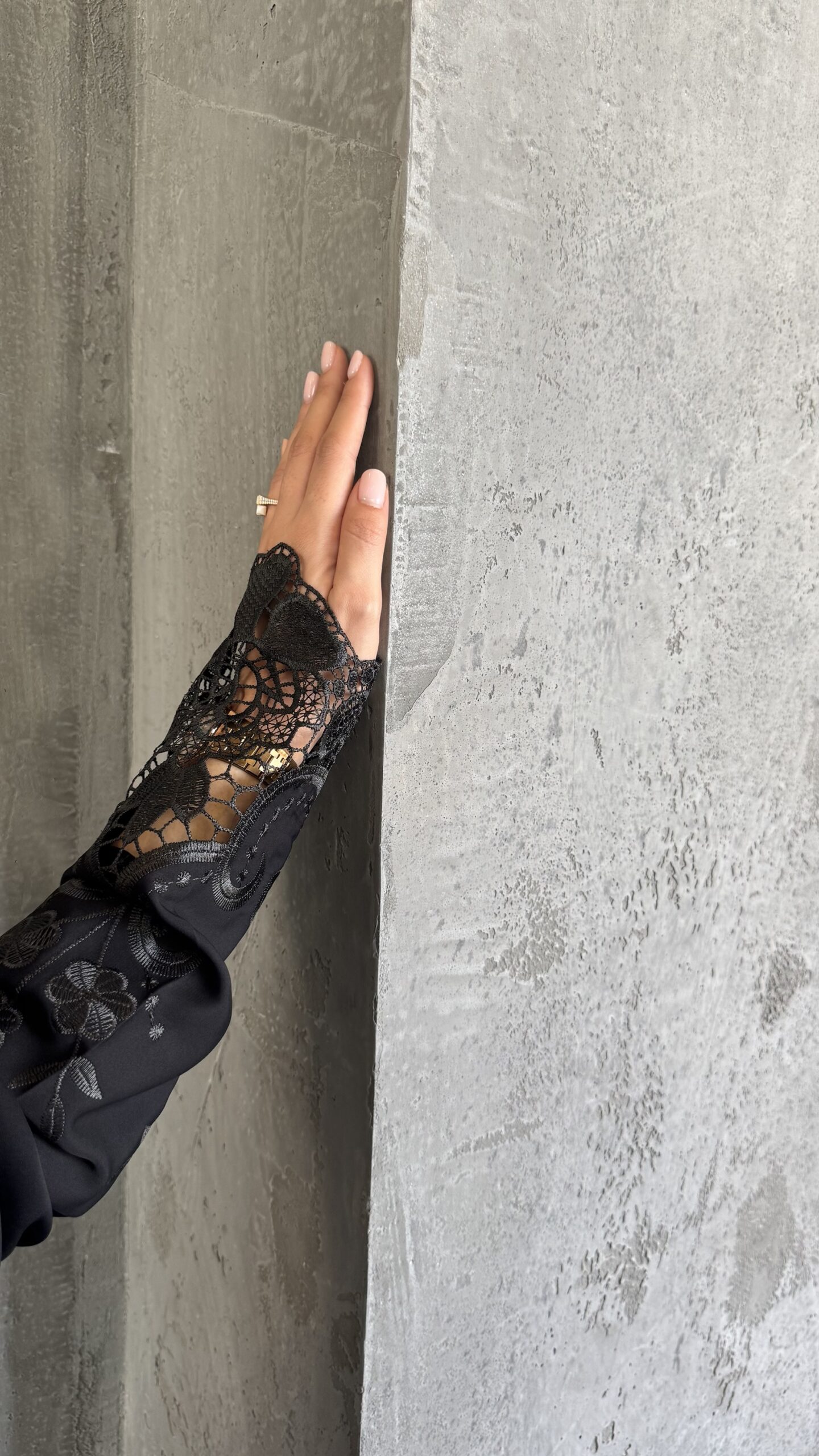 - Fabric: Crepe with lace